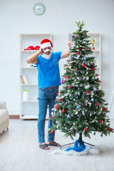 Раненый мужчина празднует Рождество дома