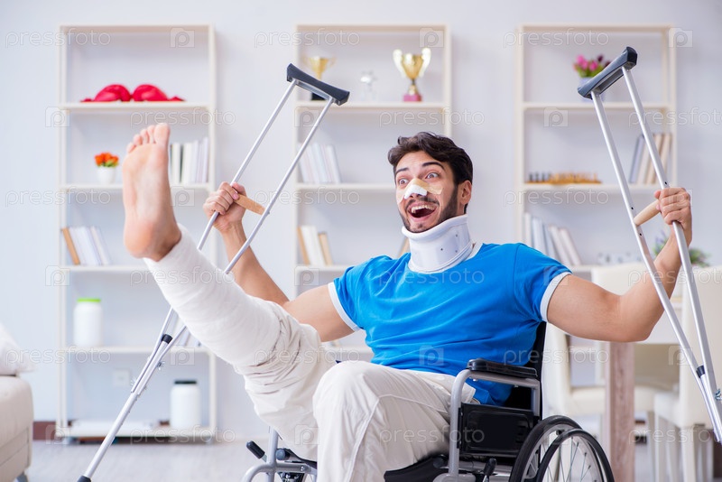 Раненый молодой человек восстанавливается дома