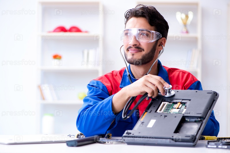 Ремонтник, работающий в технической поддержке по ремонту компьютера ноутбука tr