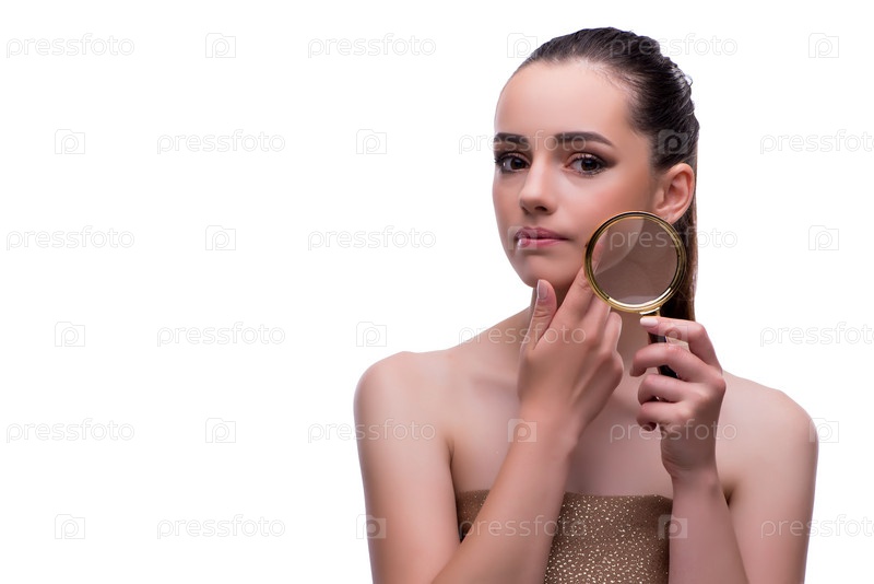 Женщина в концепции красоты с увеличительным стеклом старения морщин