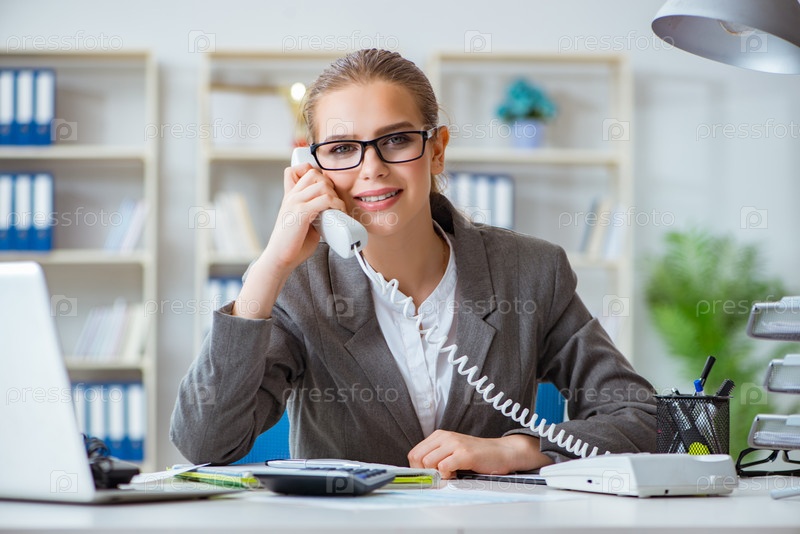 Молодая деловая женщина-бухгалтер, работающая в офисе
