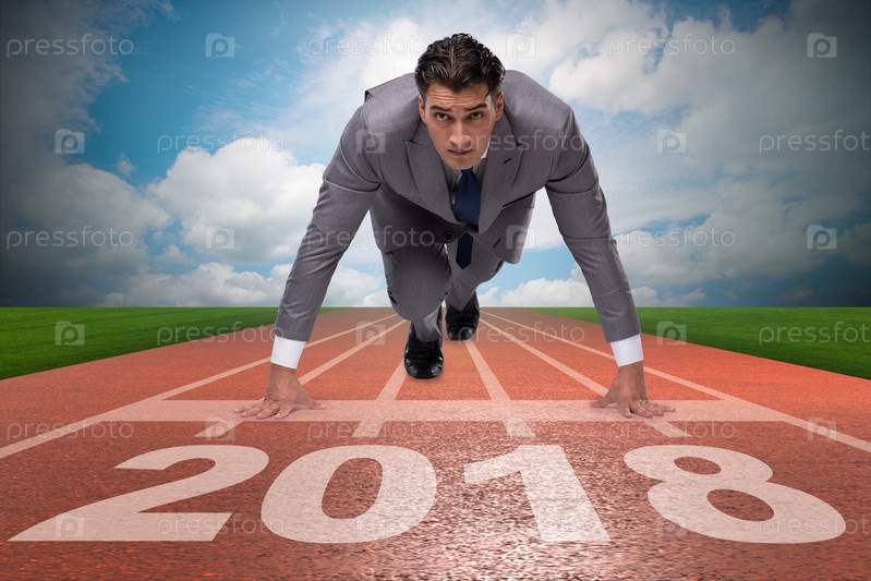 Бизнесмен, бегущий к новому 2018 году