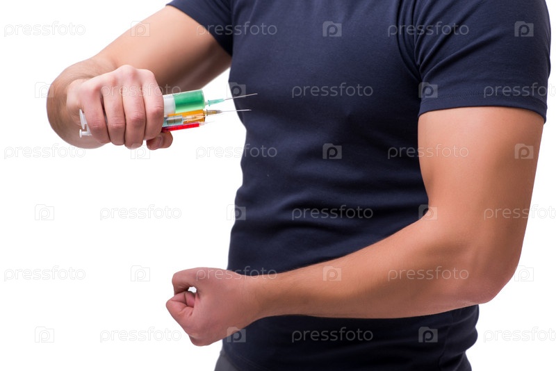 Молодой человек в допинговой концепции изолирован на белом