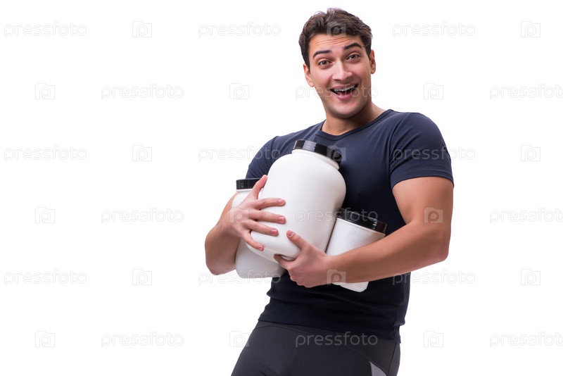 Молодой спортсмен в концепции пищевых добавок
