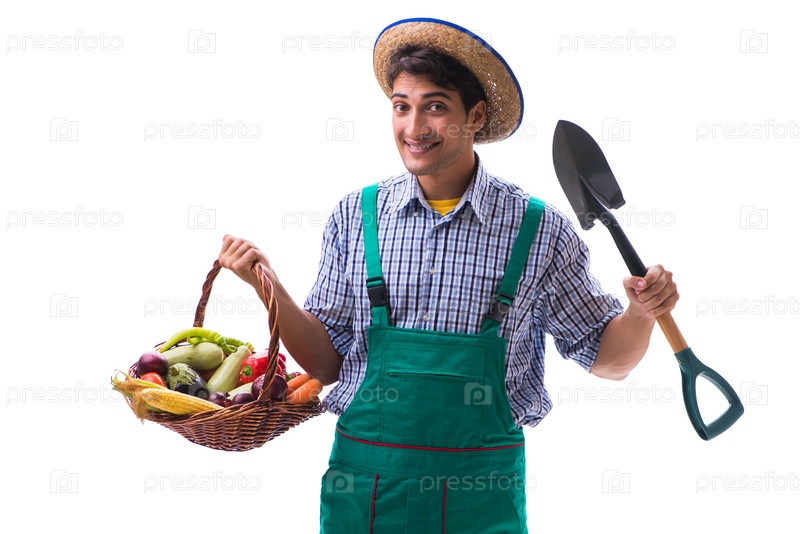 Молодой фермер изолирован на белом фоне