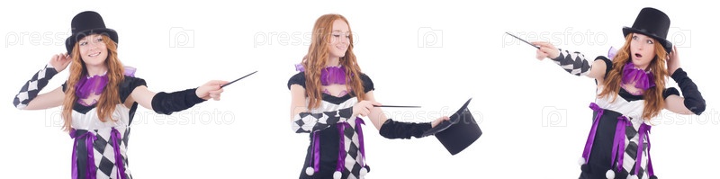 Магическая женщина с палочкой на белом
