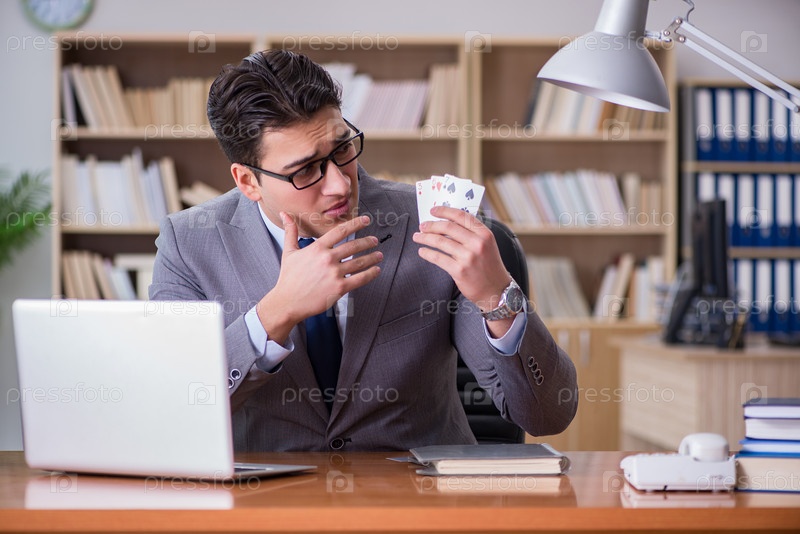 Бизнесмен, играющий в карты на работе