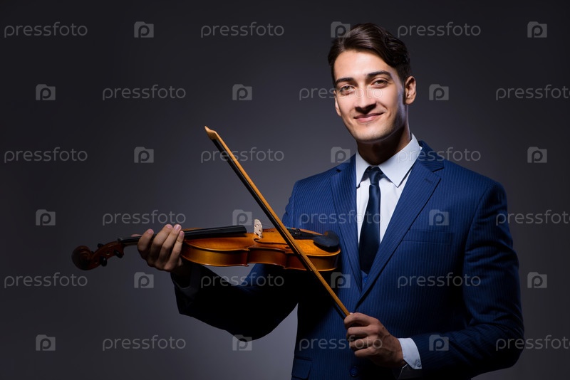 Молодой человек играет на скрипке в темной комнате