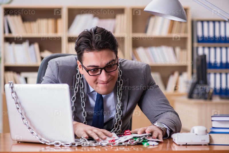 Молодой бизнесмен, пристрастившийся к онлайн-картам азартных игр, играет в т