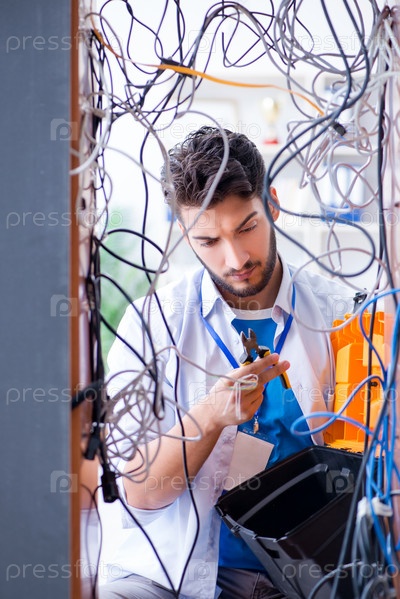Электрик пытается развязать провода в концепции ремонта