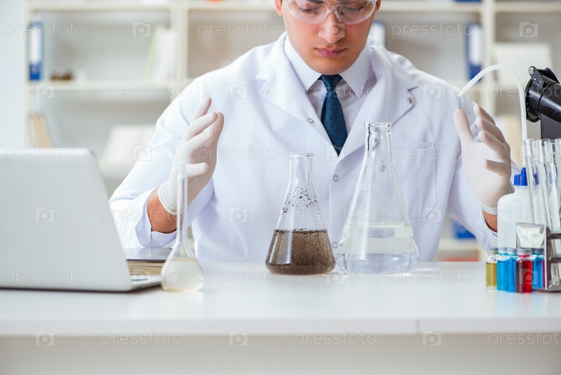Молодой ученый-исследователь проводит эксперимент по тестированию загрязнения воды
