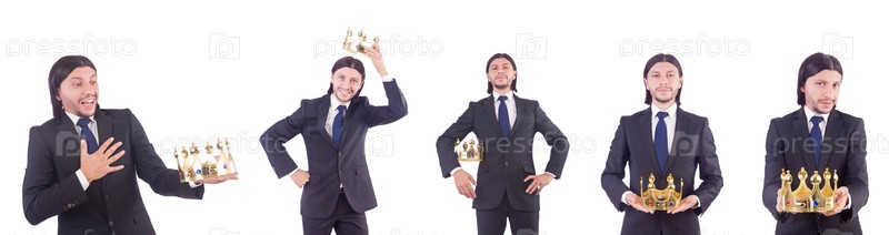 Бизнесмен с короной изолирован на белом