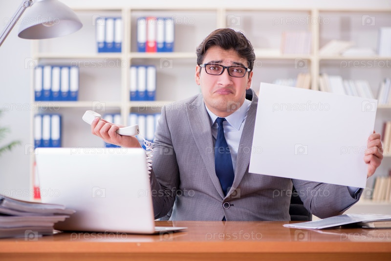 Бизнесмен в офисе, держащий пустую доску сообщений