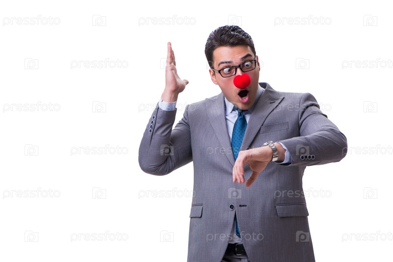 Забавный бизнесмен-клоун изолирован на белом фоне
