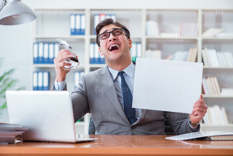 Бизнесмен в офисе, держащий пустую доску сообщений