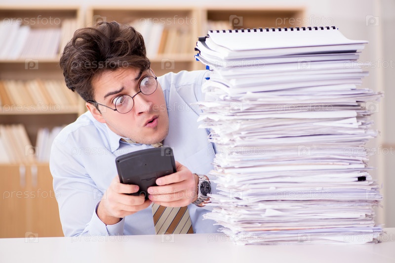 Забавный бухгалтер-бухгалтер работает в офисе