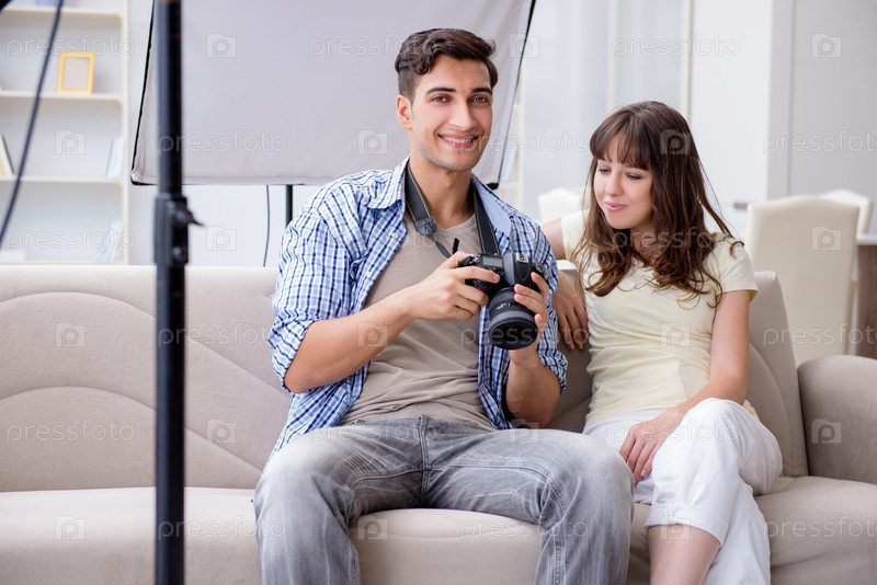 Молодой фотограф, работающий в фотостудии