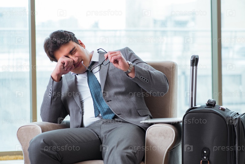 Молодой бизнесмен в деловом салоне аэропорта ждет рейса