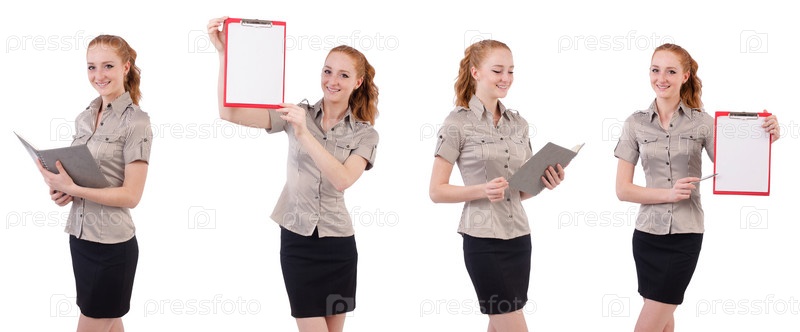 Довольно молодой сотрудник с бумагой, изолированной на белом