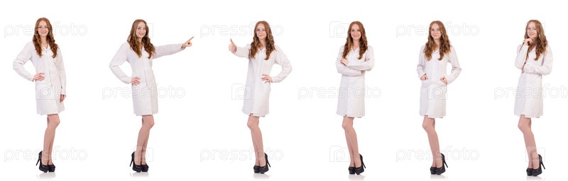 Красивая женщина-врач, изолированная на белом