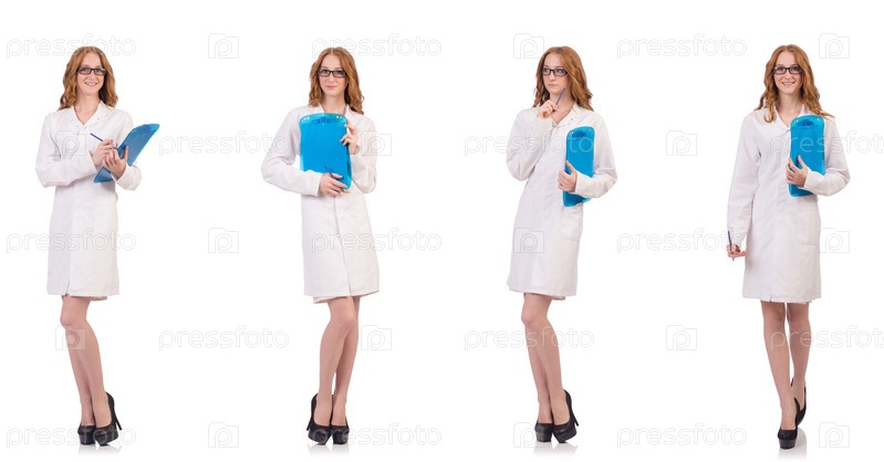 Красивая женщина-врач, держащая дневник изолированный на белом