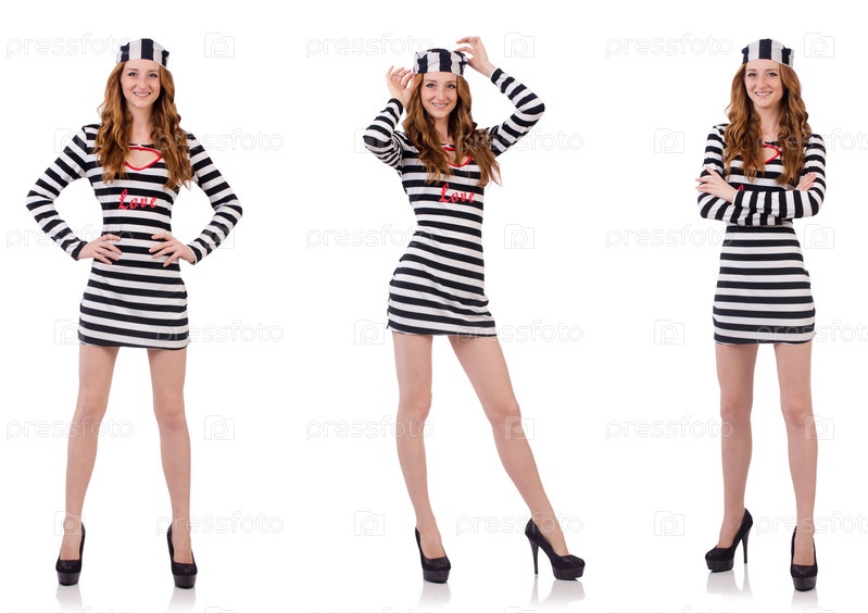 Красивая девушка в тюремной форме изолирована на белом