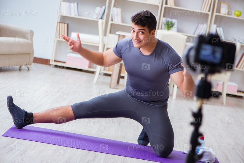 Спорт и здоровье блоггер записывает видео в спортивной концепции