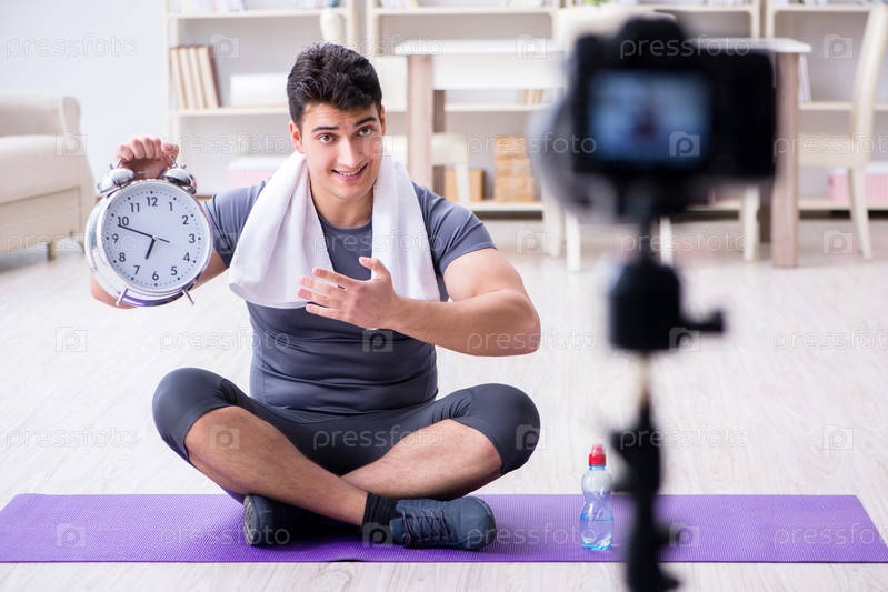 Спорт и здоровье блоггер записывает видео в спортивной концепции