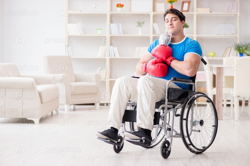 Боксер-инвалид на инвалидной коляске, восстанавливающийся от травмы