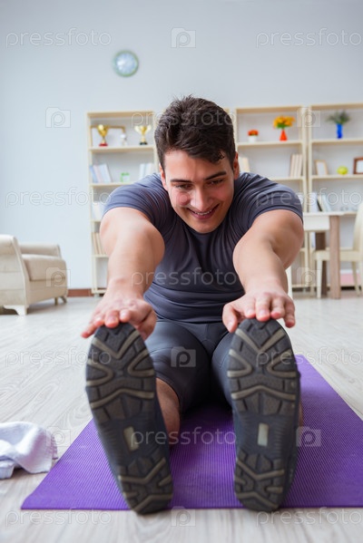 Молодой человек тренируется дома в спорте и здоровом образе жизни с