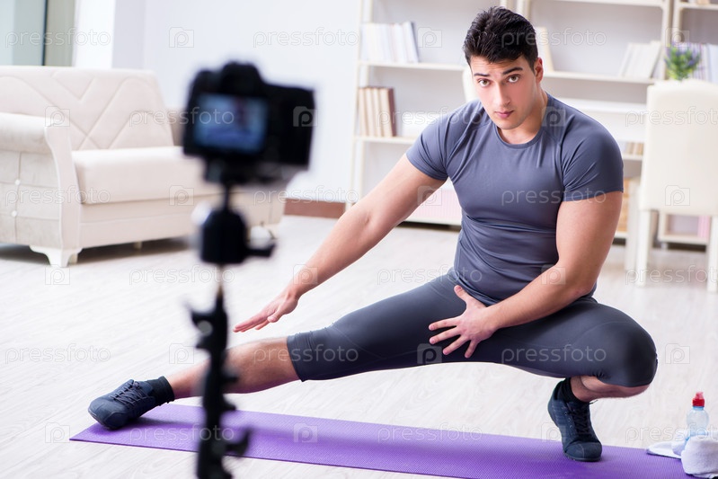 Спорт и здоровье блоггер записывает видео в спортивной концепции