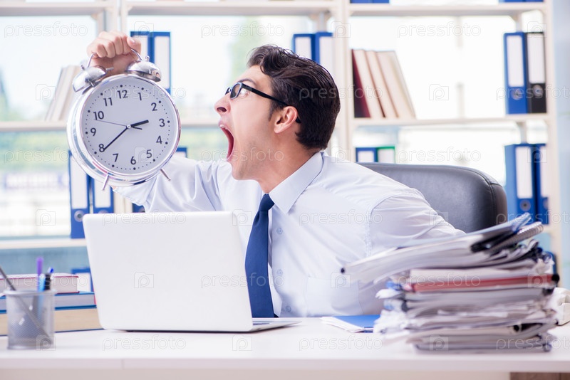 Бизнесмен пропустил крайний срок для выполнения поставленных задач в офисе