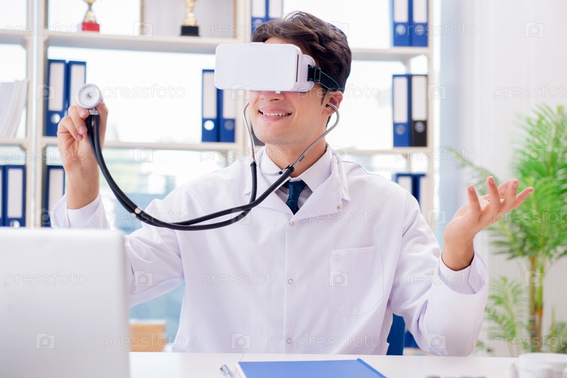 Доктор, работающий с очками виртуальной реальности VR