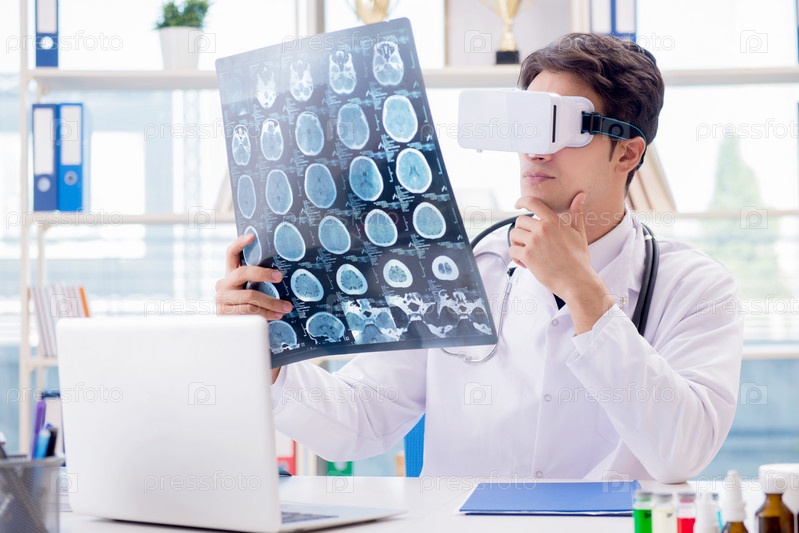Доктор, работающий с очками виртуальной реальности VR