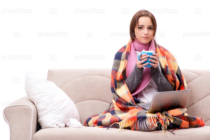 Подросток, страдающий от холода, сидит на диване