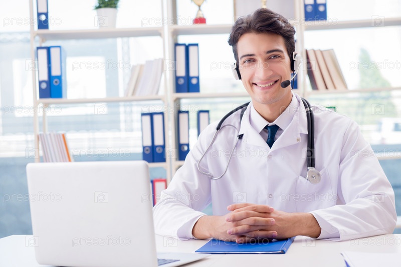 Молодой врач-мужчина в концепции телездоровья