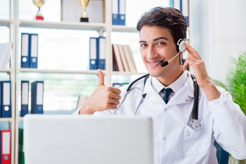 Молодой врач-мужчина в концепции телездоровья