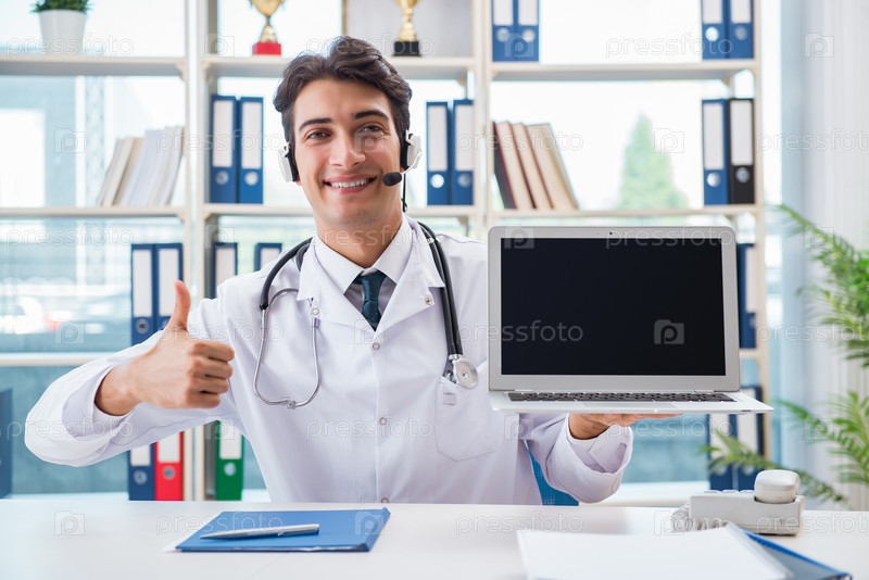 Молодой врач-мужчина в концепции телездоровья