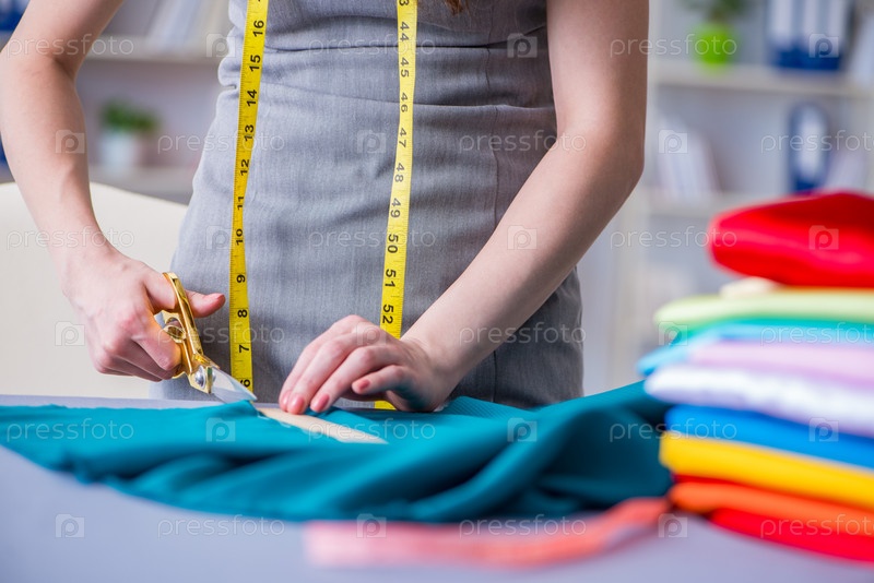 Женщина-ремесленник, работающая на одежде шитье швейное пошив измерение fa
