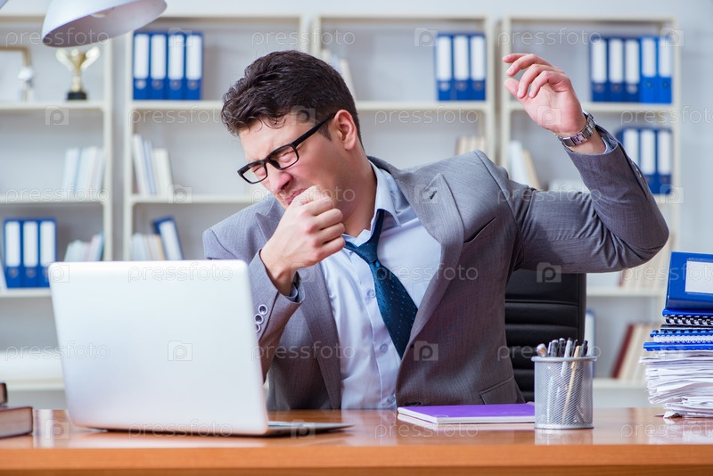 Бизнесмен чрезмерно потеет и плохо пахнет в офисе на работеp
