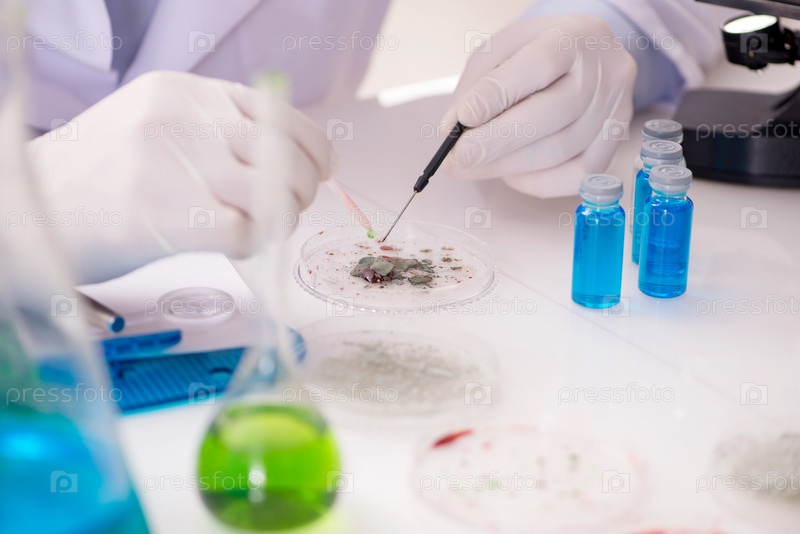 Мужчина-врач, работающий в лаборатории над вирусной вакциной