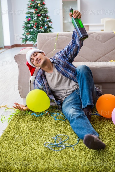 Мужчина с похмельем после рождественской вечеринки