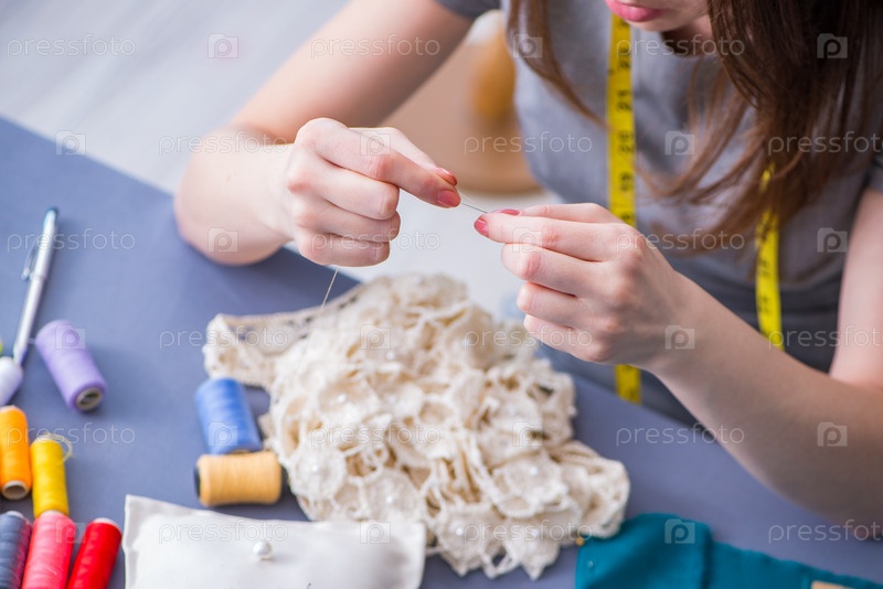 Женщина-ремесленник, работающая на одежде шитье швейное пошив измерение fa