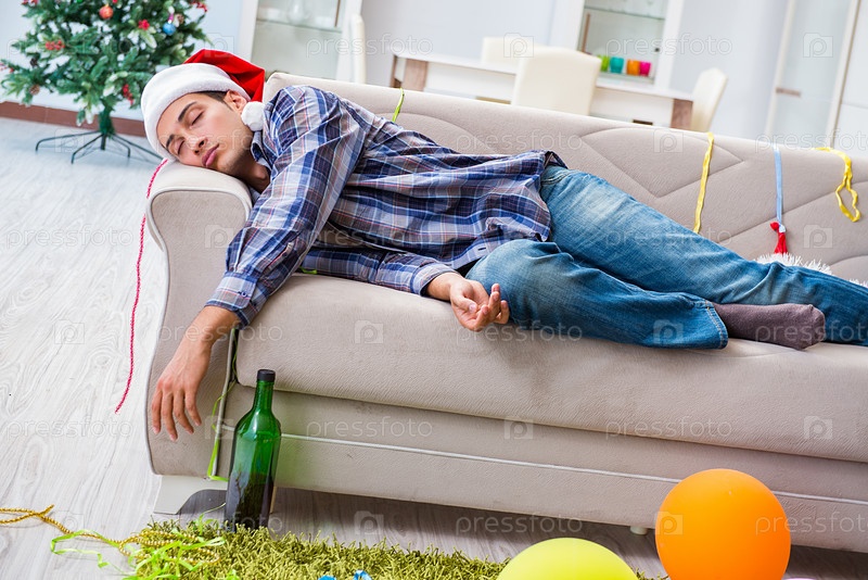 Мужчина с похмельем после рождественской вечеринки