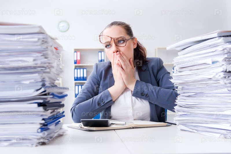 Уставшая деловая женщина с бумажной нагрузкой