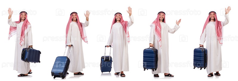 Араб с багажом на белом