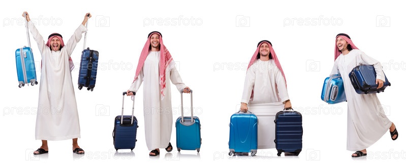 Араб с багажом на белом