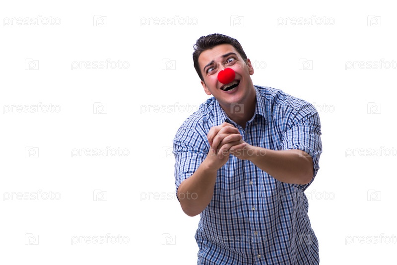 Смешный мужчина клоун изолирован на белом фоне