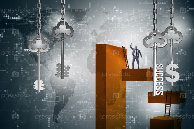 Бизнесмен в ключе к концепции финансового успеха