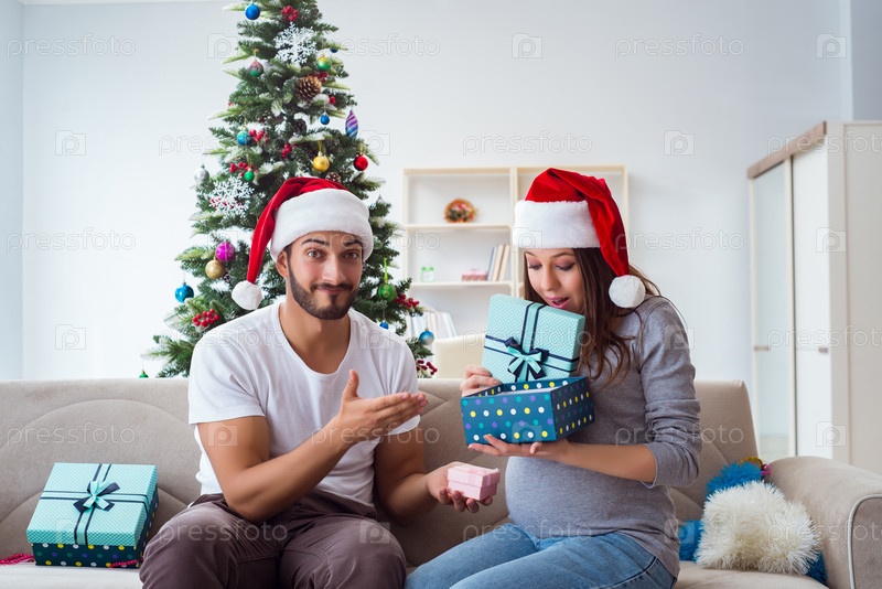 Молодая семья ждет ребенка, ребенок празднует Рождество